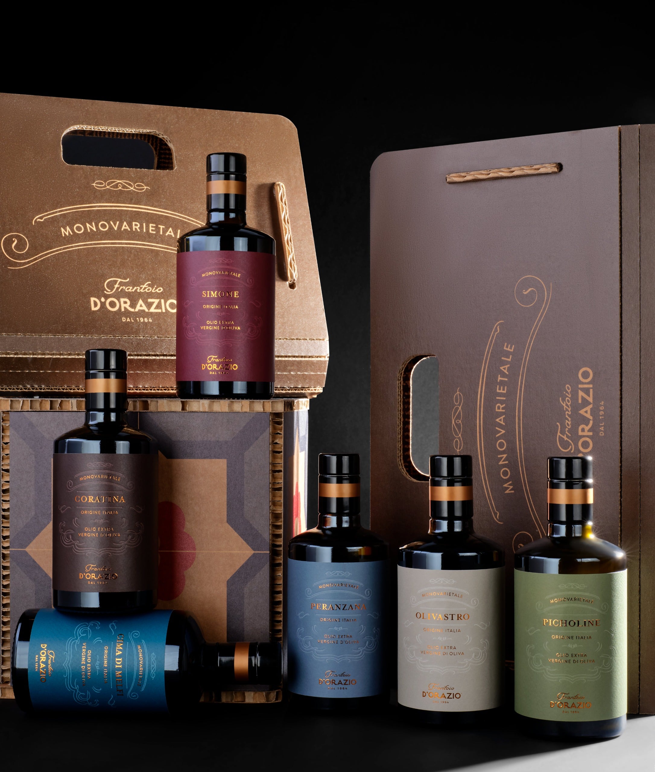 Ogni bottiglia custodisce l’identità di una varietà diversa ed è valorizzata da un design elegante e ricercato, pensato per esaltare la qualità del contenuto.